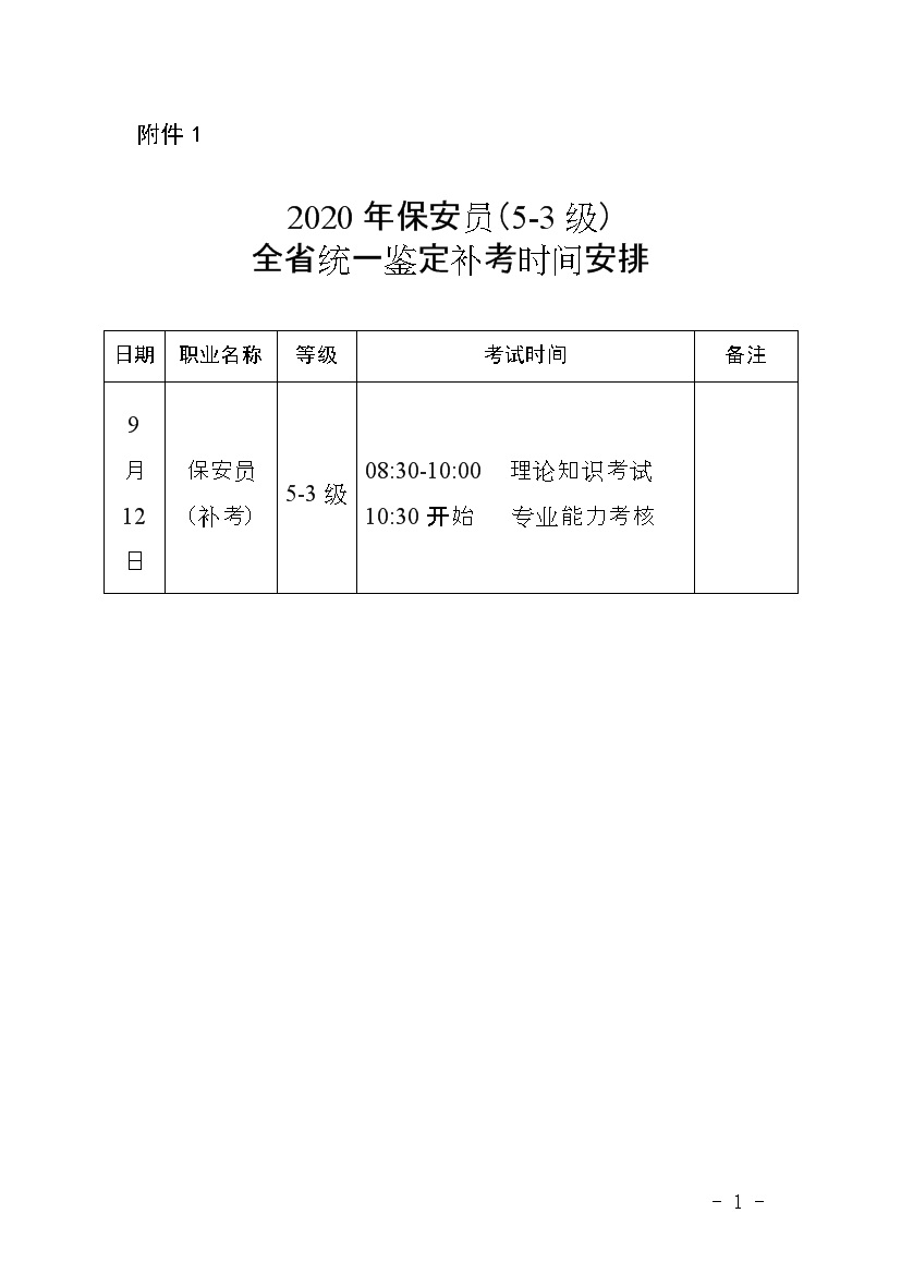 1.2020年保安员(5-3级)全省统一鉴定补考时间安排