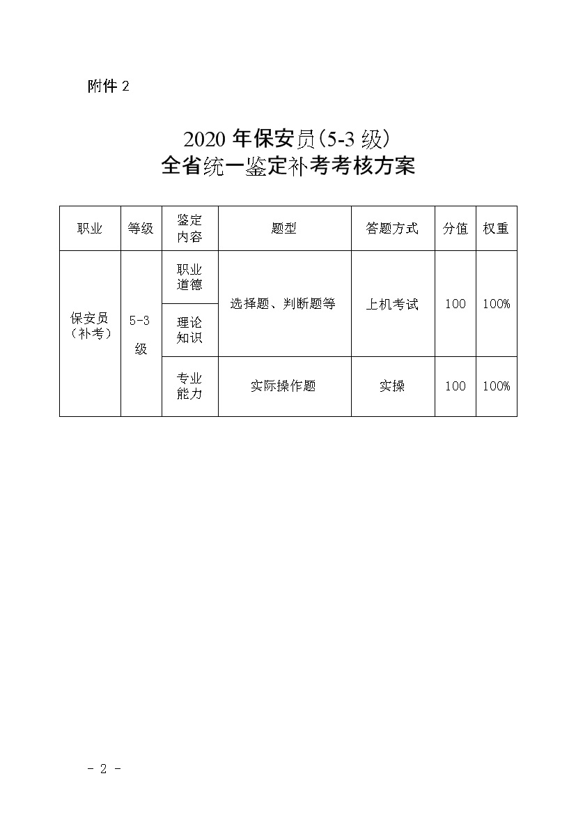2.2020年保安员(5-3级)全省统一鉴定补考考核方案