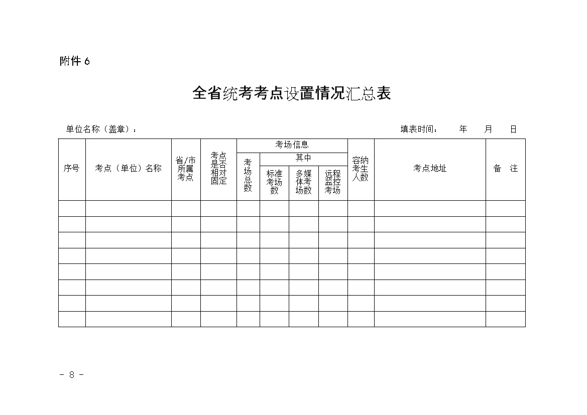 6.全省统考考点设置情况汇总表