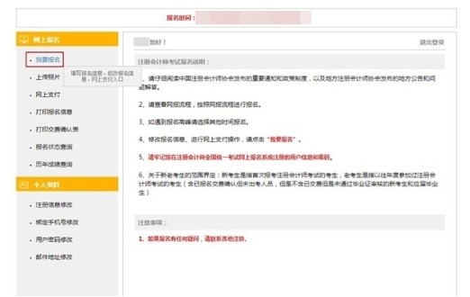 登陆进入注册会计师网上报名系统首页,点击左上角"我要报名"按钮。
