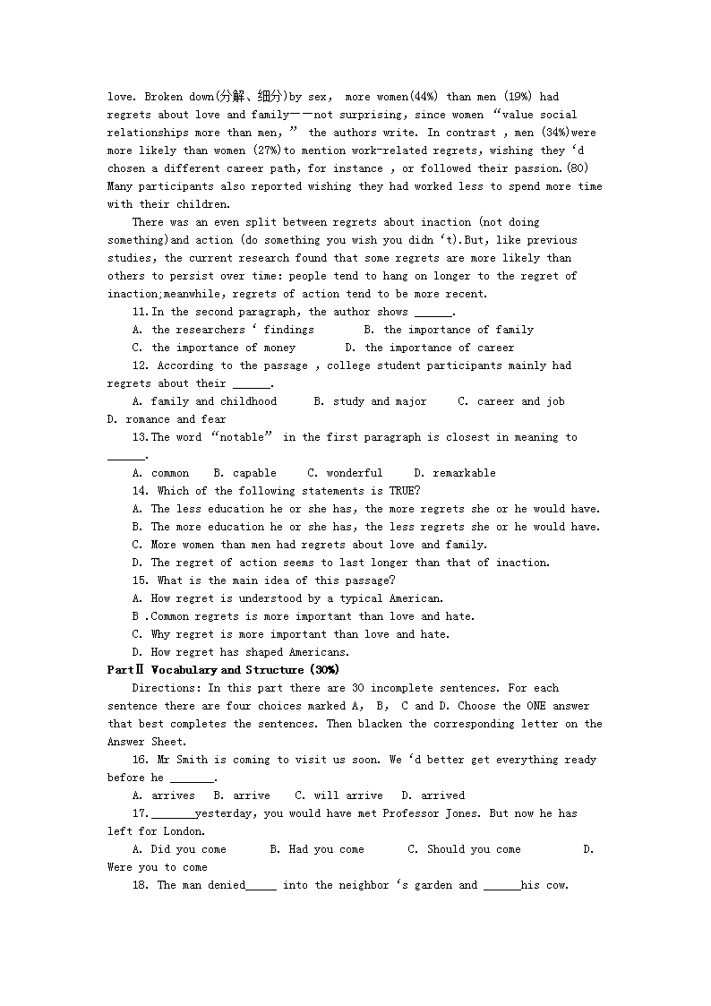 【文档名称】 2011年11月北京成人英语三级考试真题及答案(Word版).doc