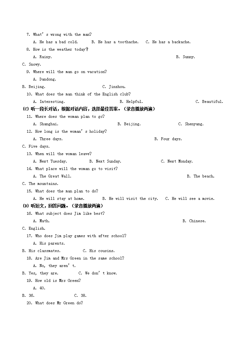 【文档预览】 无忧考网整理发布2013年辽宁省丹东市中考英语试题含答案(Word版),前五页预览如下: