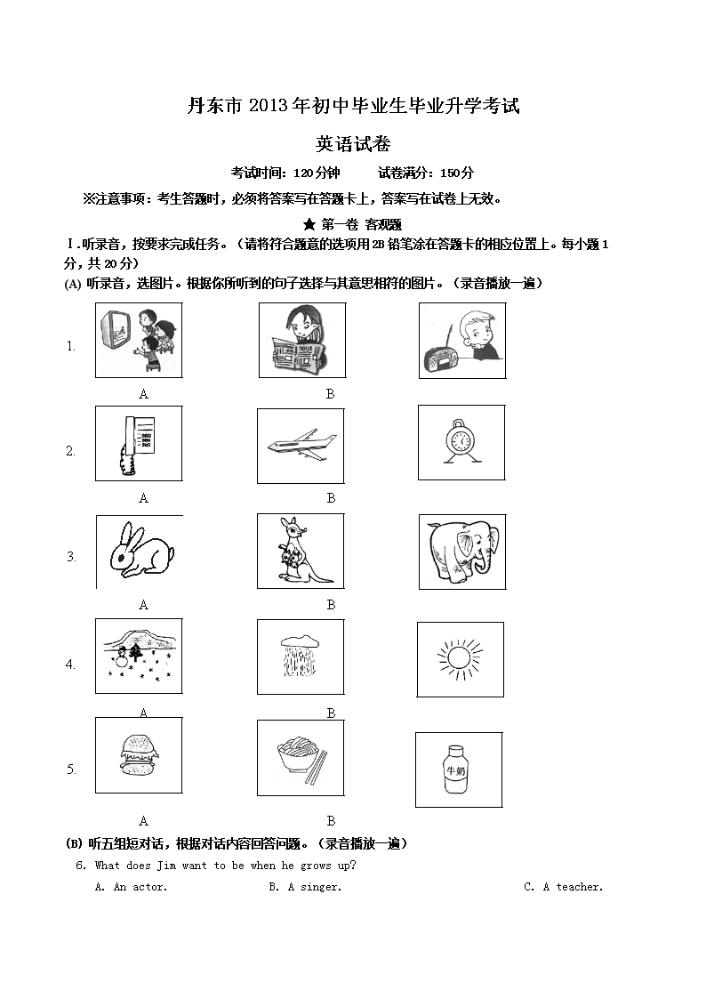 【文档名称】 2013年辽宁省丹东市中考英语试题含答案(Word版).doc