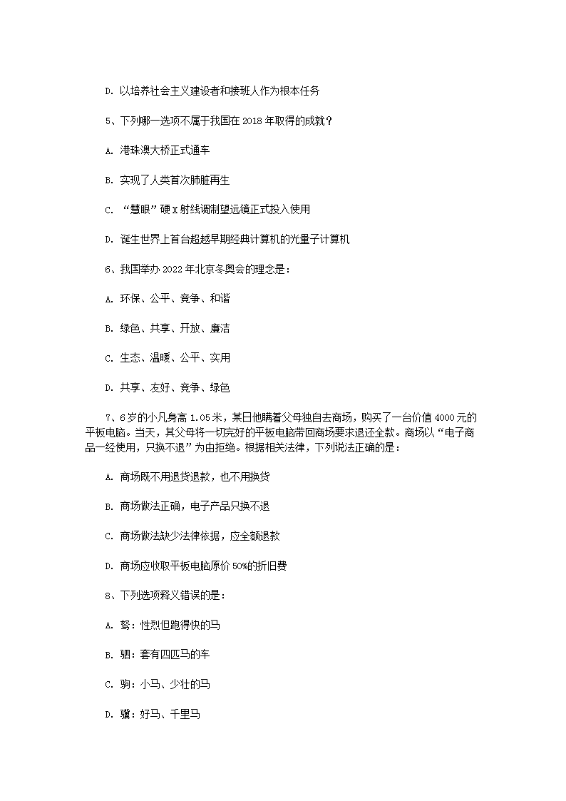 【文档名称】 2019年福建公务员考试行测真题及答案(Word版).doc