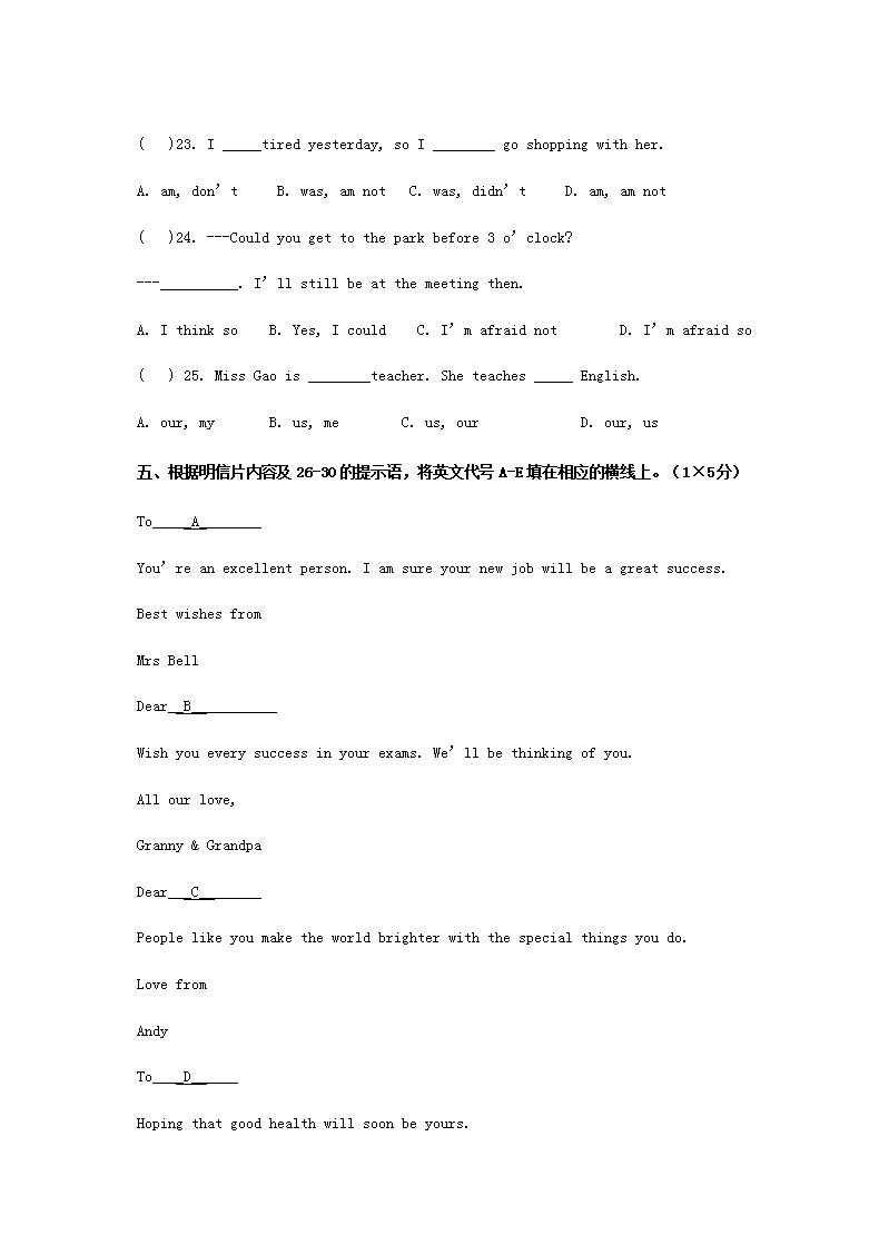 【文档预览】 无忧考网整理发布北京小升初英语真题及答案(Word版),前五页预览如下: