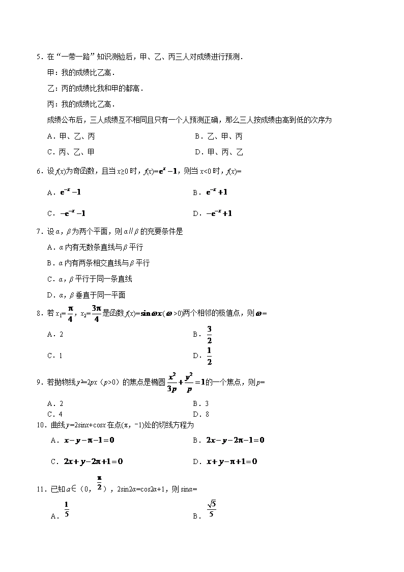 【文档预览】 无忧考网整理发布2019年海南卷文科数学高考真题及答案(Word版),前五页预览如下: