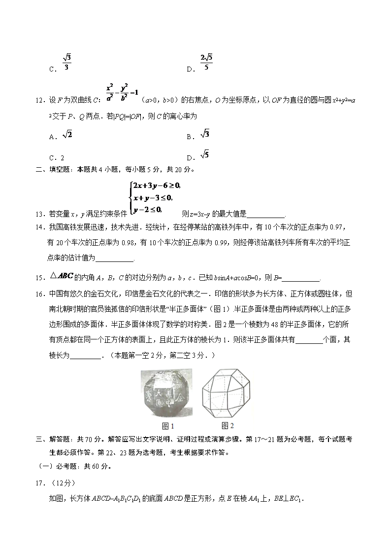 【文档名称】 2019年海南卷文科数学高考真题及答案(Word版).doc