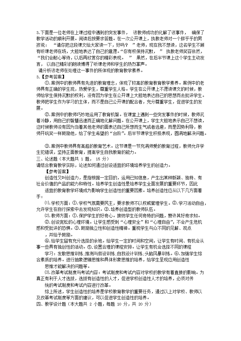 【文档预览】 无忧考网整理发布2015河南特岗教师招聘考试真题及答案(Word版),前五页预览如下: