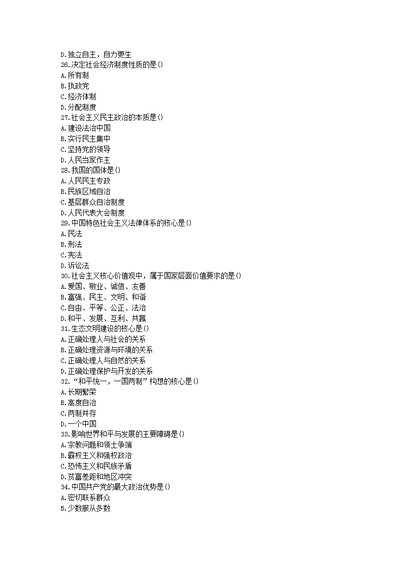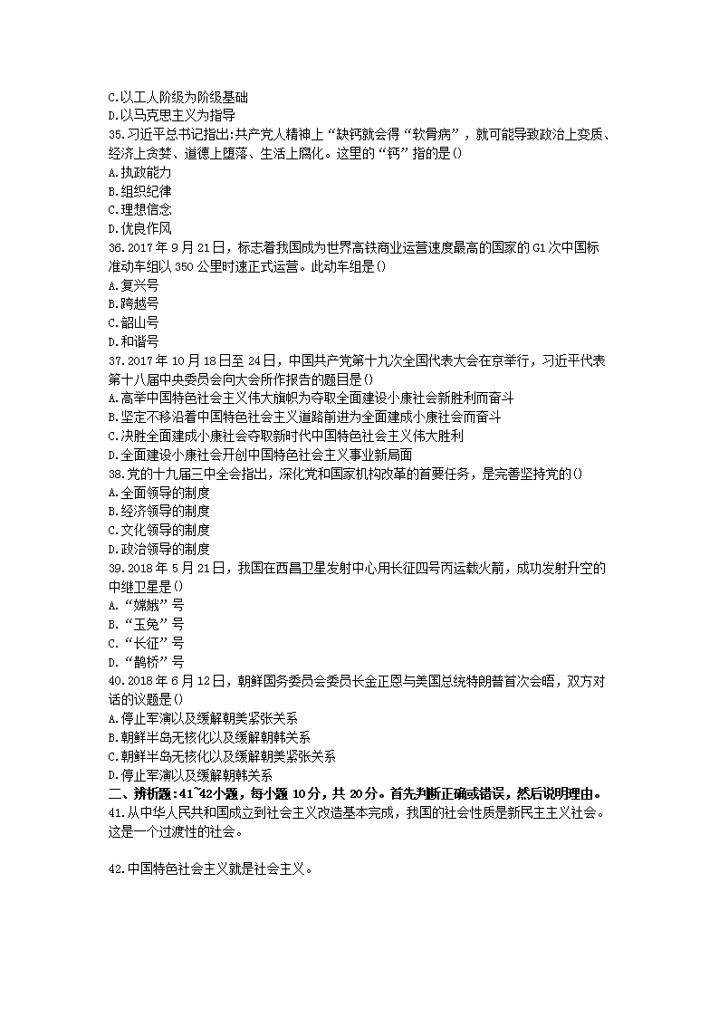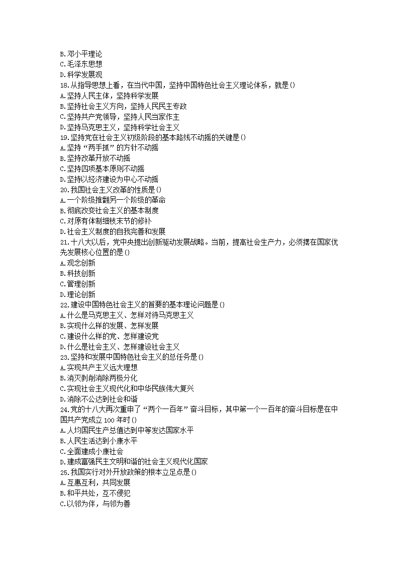 【文档名称】 2018年成人高考专升本政治考试真题及答案(Word版).doc