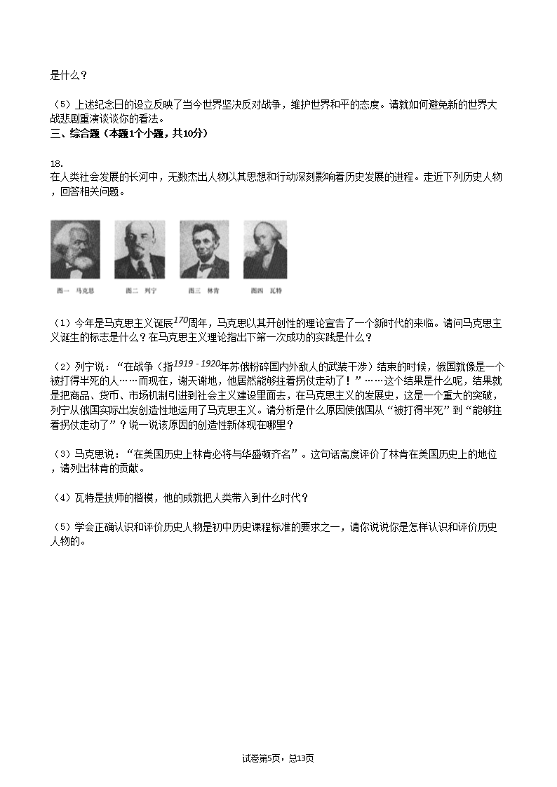 【文档预览】 无忧考网整理发布2018年内蒙古呼伦贝尔市中考历史试卷及答案(Word版),前五页预览如下: