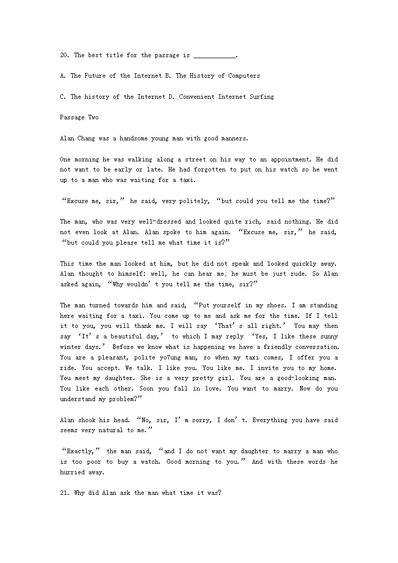 【文档预览】 无忧考网整理发布2010年广东成人学士学位英语考试真题(Word版),前五页预览如下: