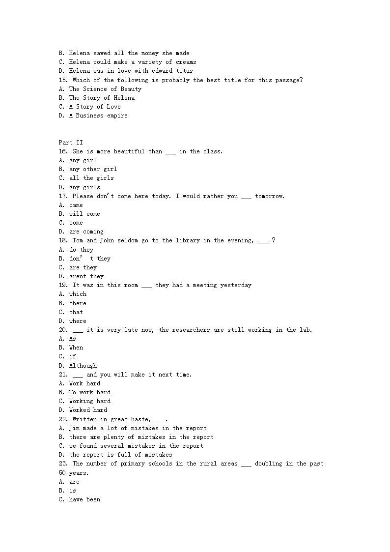 【文档名称】 2018年5月北京成人学士学位英语考试真题(Word版).doc