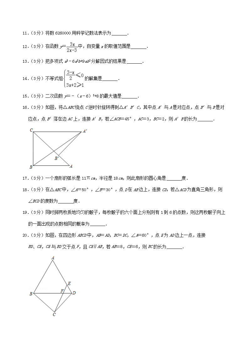 【文档名称】 2019年黑龙江省哈尔滨市中考数学真题含答案解析(Word版).doc