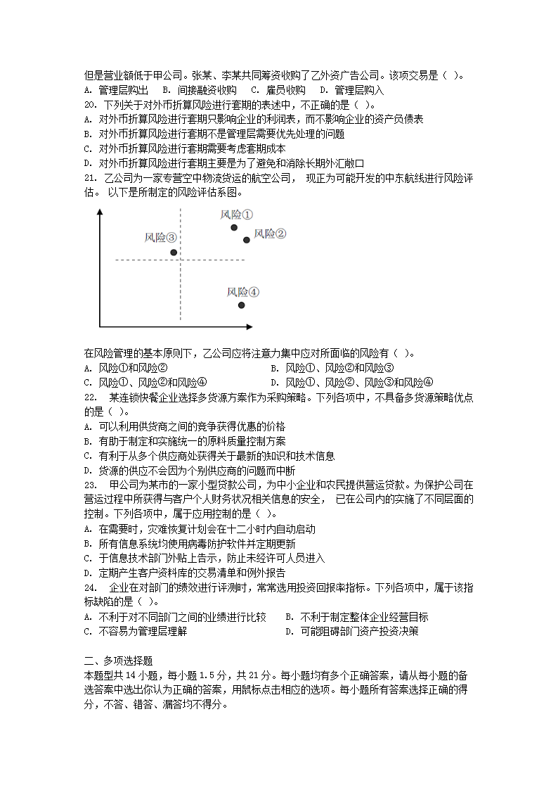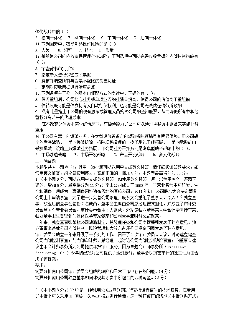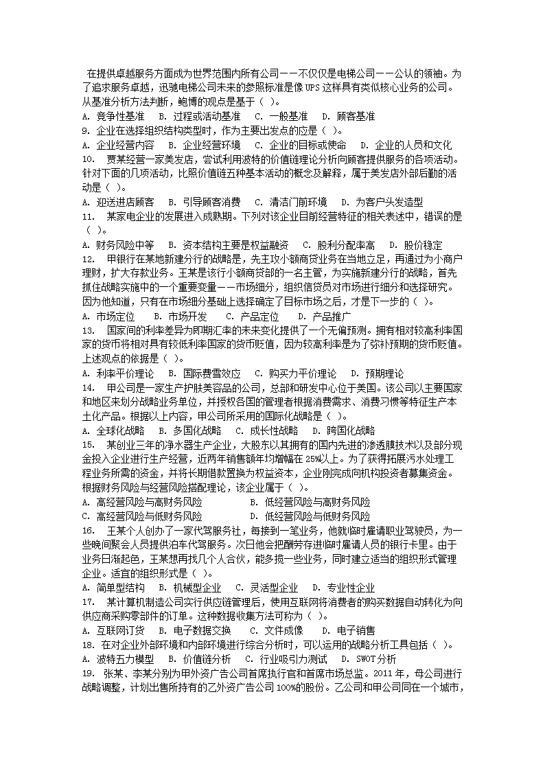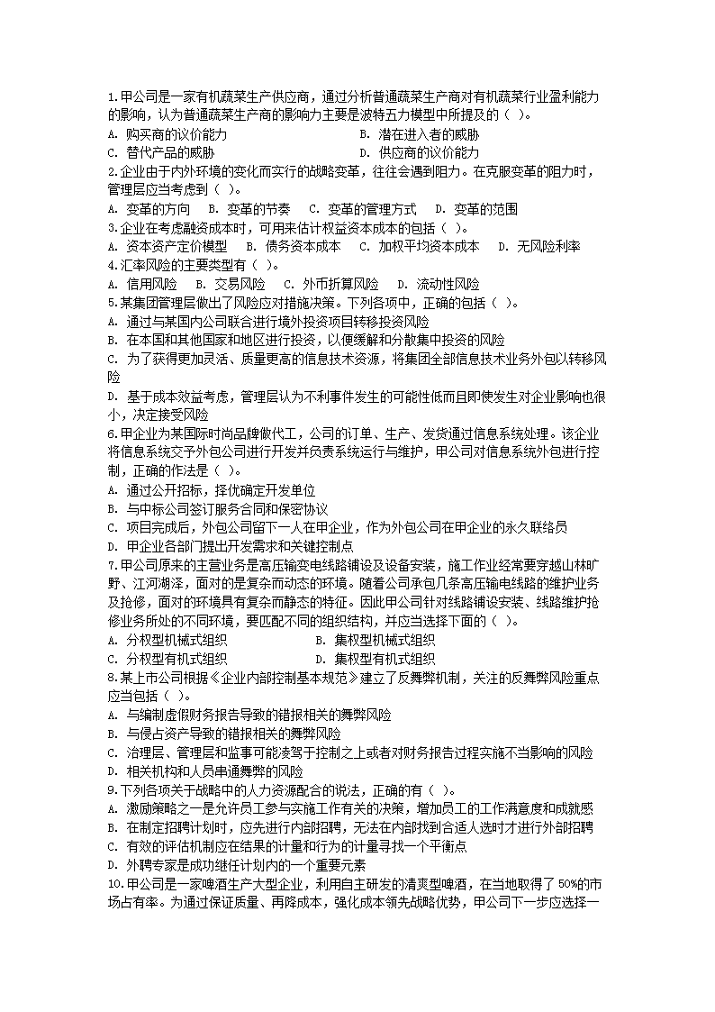 【文档名称】 2012注会公司战略与风险管理考试真题及答案B卷(Word版).doc