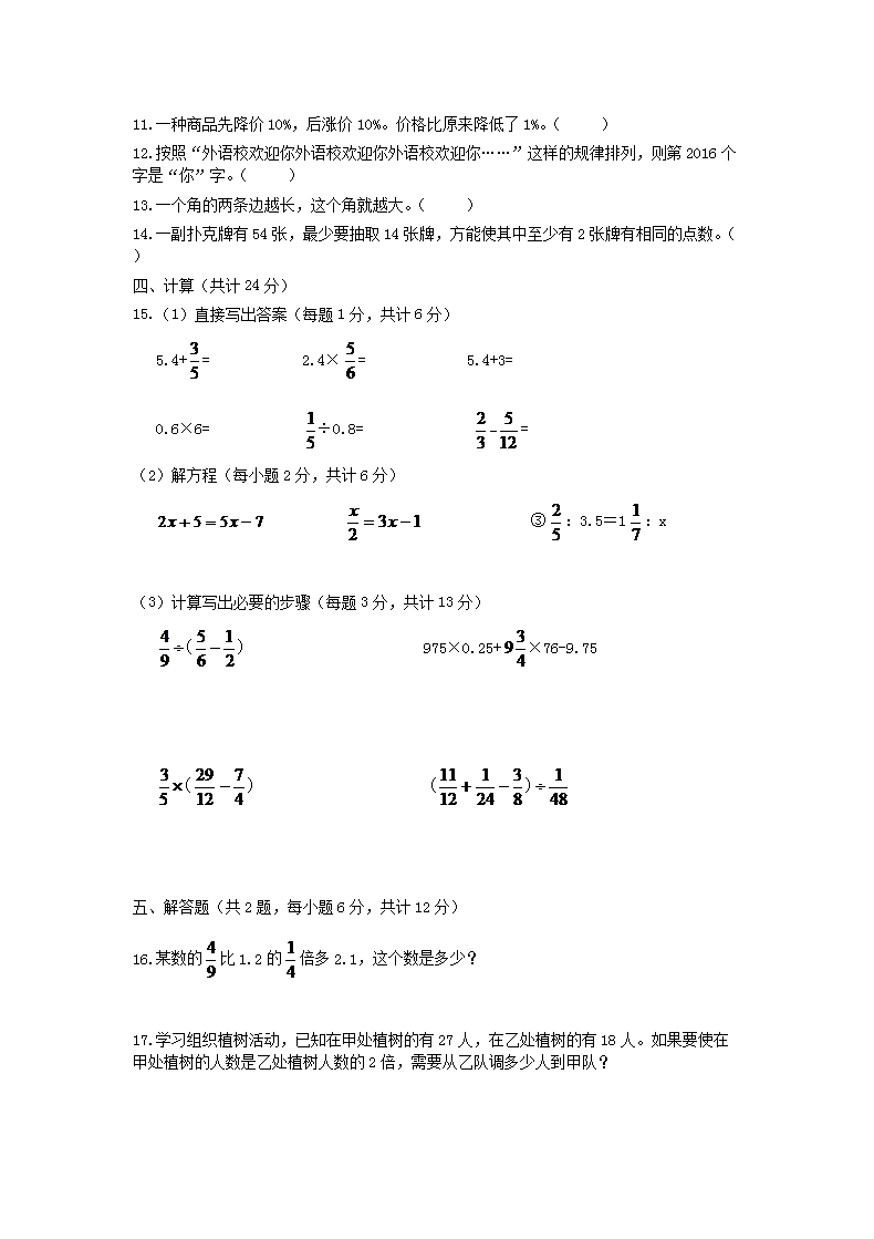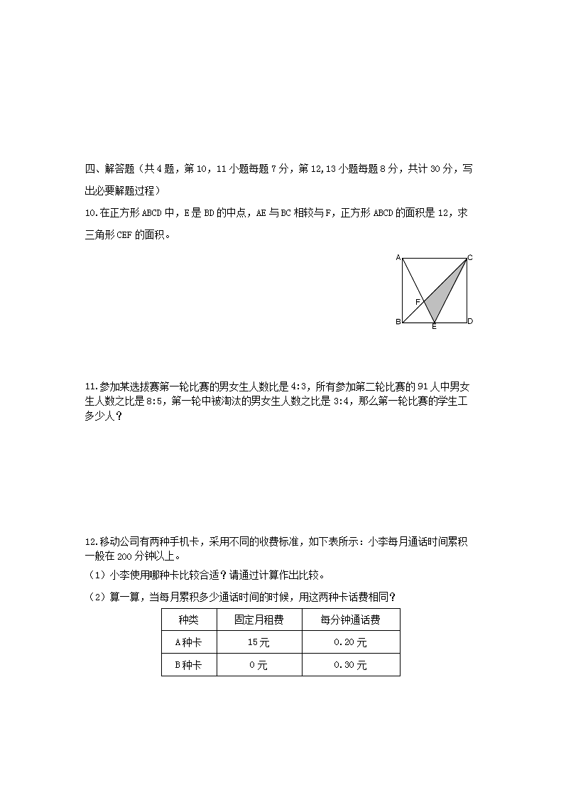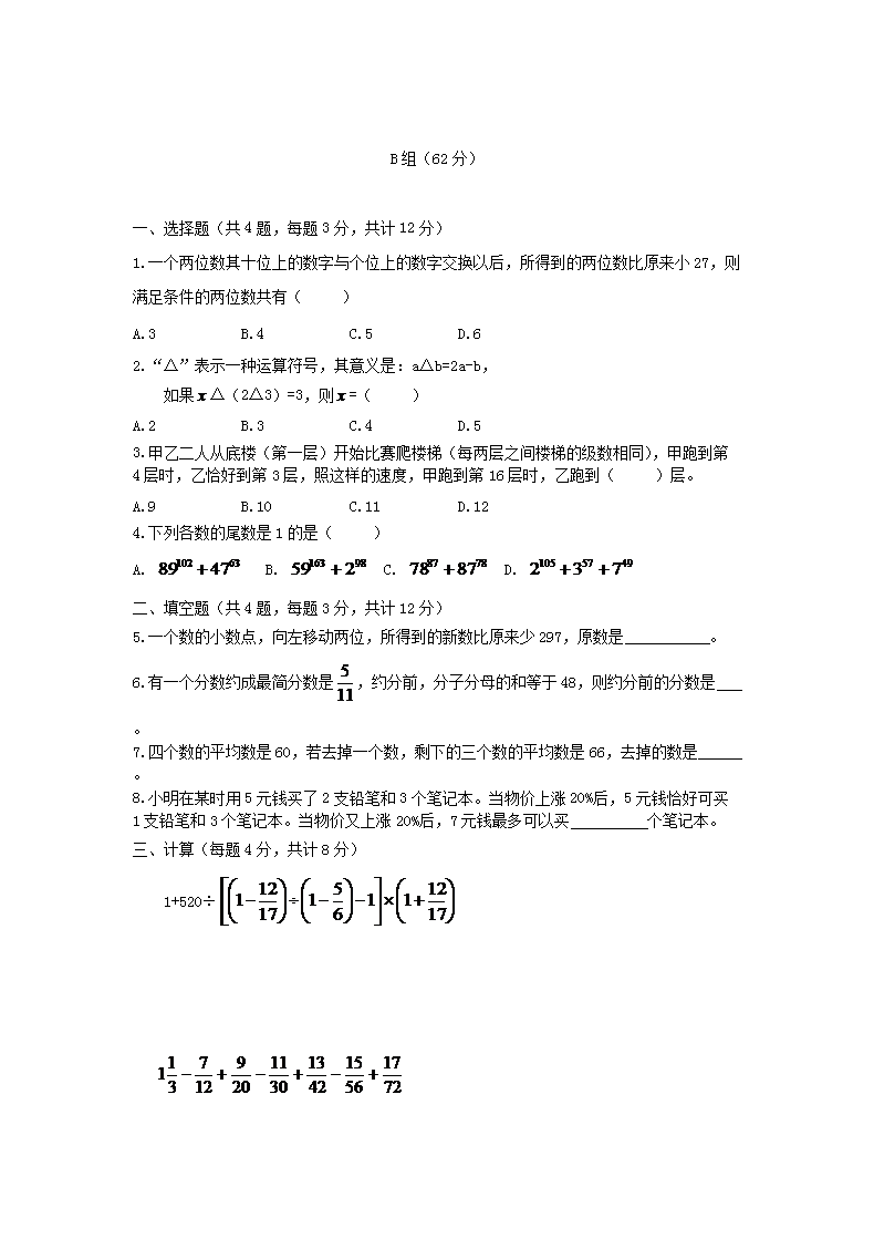 【文档名称】 2019年重庆小升初招生数学真题AB组(Word版).doc