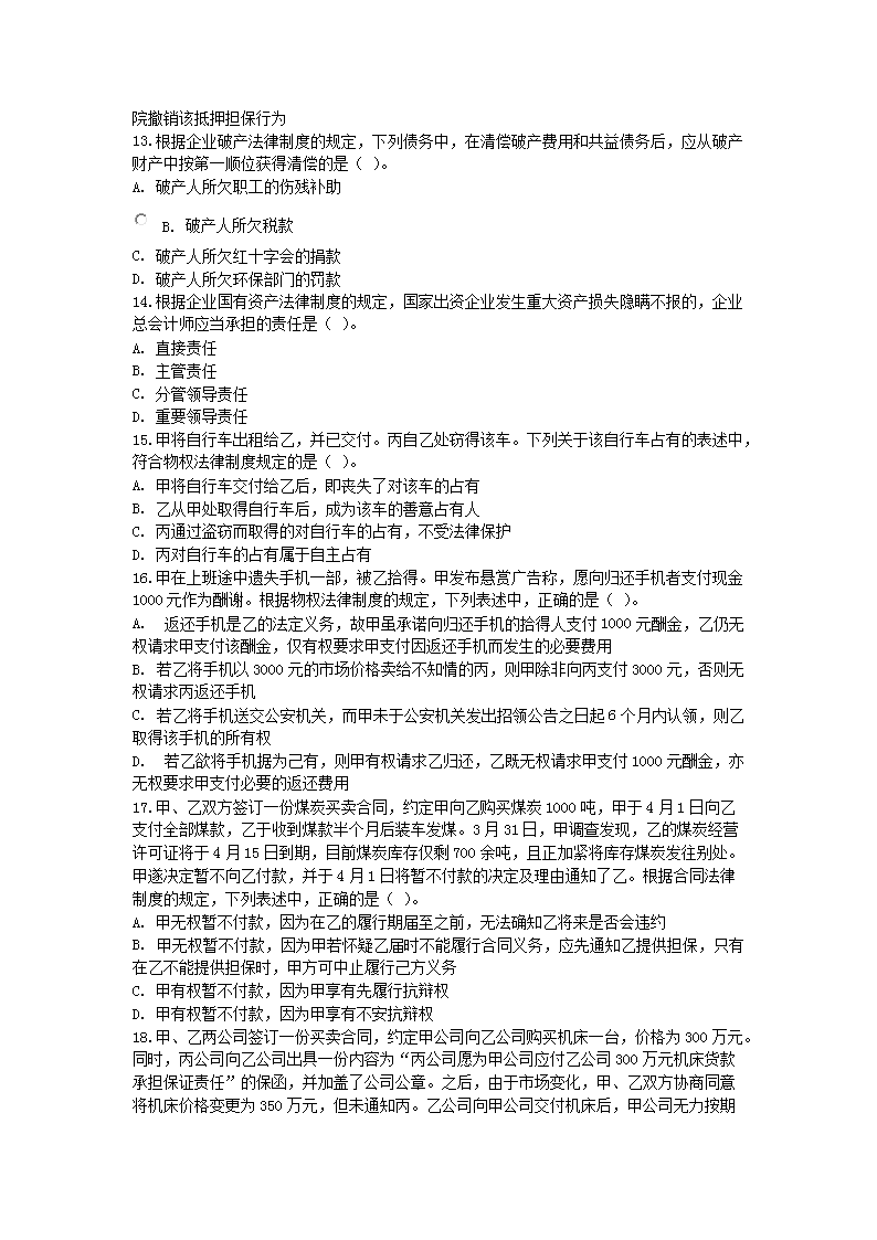 【文档预览】 无忧考网整理发布2012年注册会计师经济法考试真题及答案A卷(Word版),前五页预览如下: