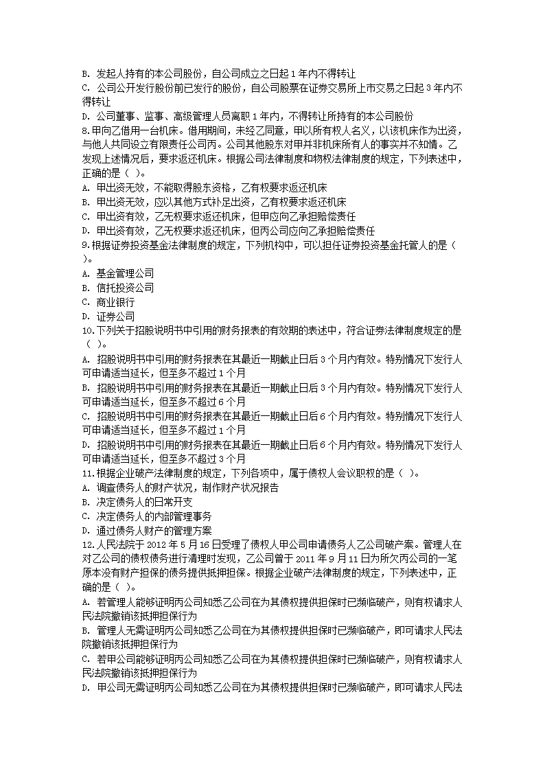 【文档名称】 2012年注册会计师经济法考试真题及答案A卷(Word版).doc