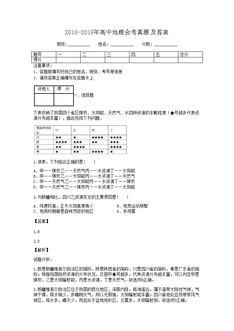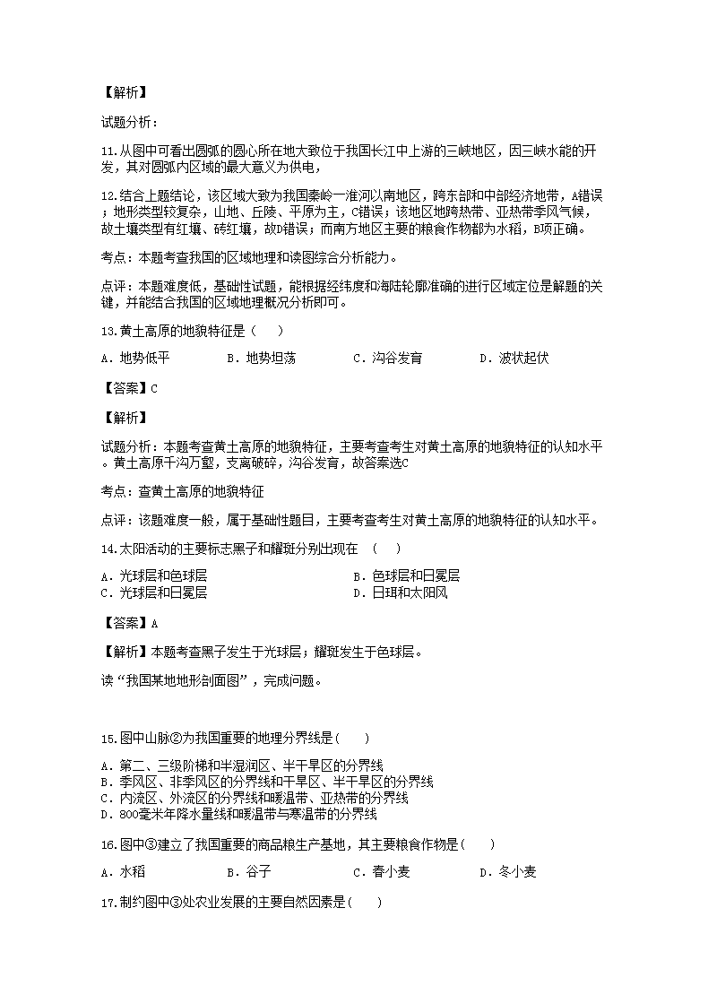 【文档名称】 2018-2019年高中地理会考真题及答案(Word版).doc
