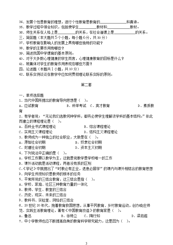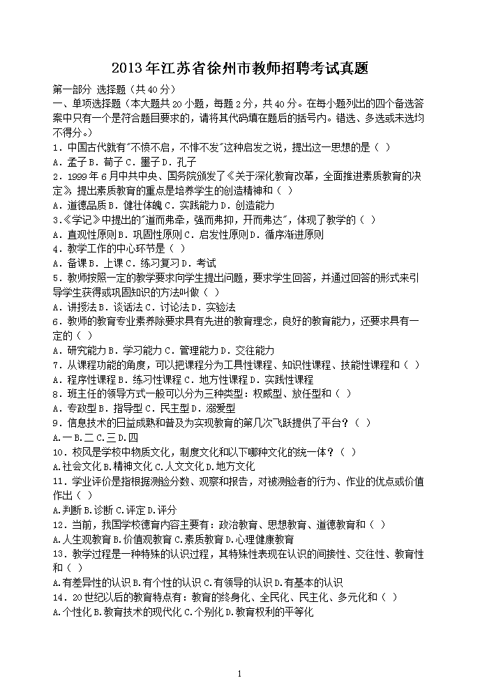 【文档名称】 2013年江苏省徐州市教师招聘考试真题(Word版).doc