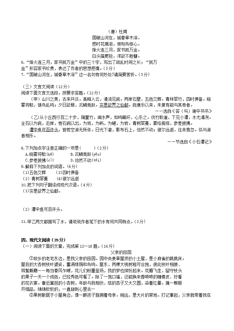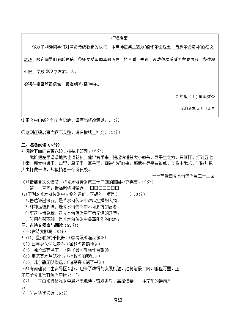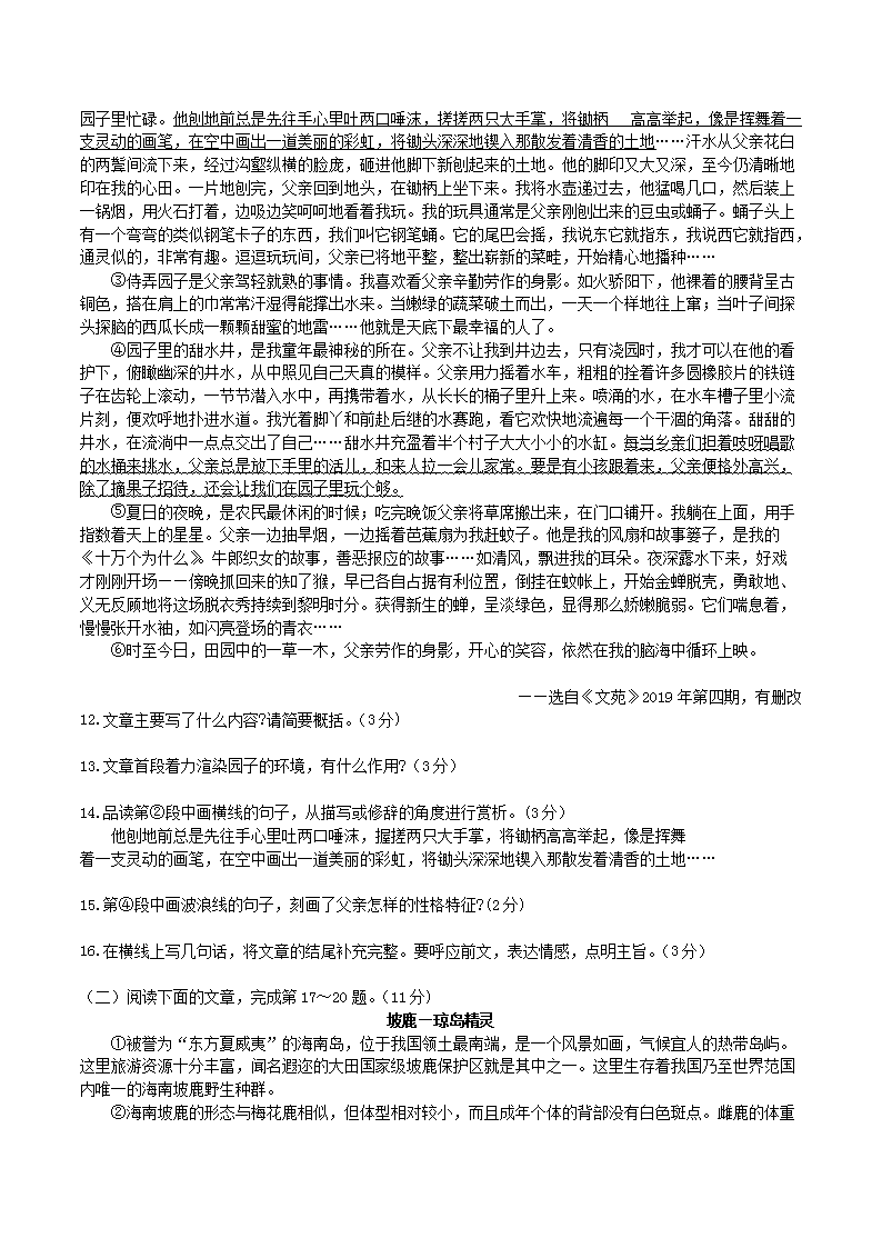 【文档名称】 2019年海南省中考语文真题及答案(Word版).doc