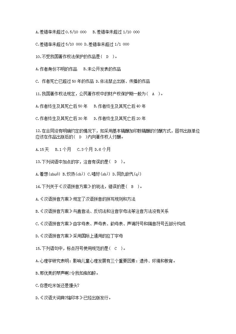 【文档名称】 2008初级出版专业资格考试基础知识真题及答案(Word版).doc