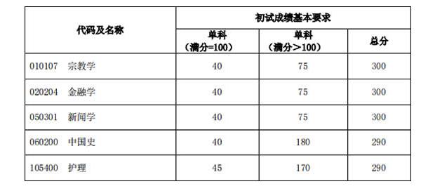 3.“退役大学生士兵计划”:总分满分等于500分的专业,要求考生总分不低于所报考学科初试成绩基本要求总分的10分;总分满分等于300分的专业,要求考生总分不低于所报考学科初试成绩基本要求总分的5分。