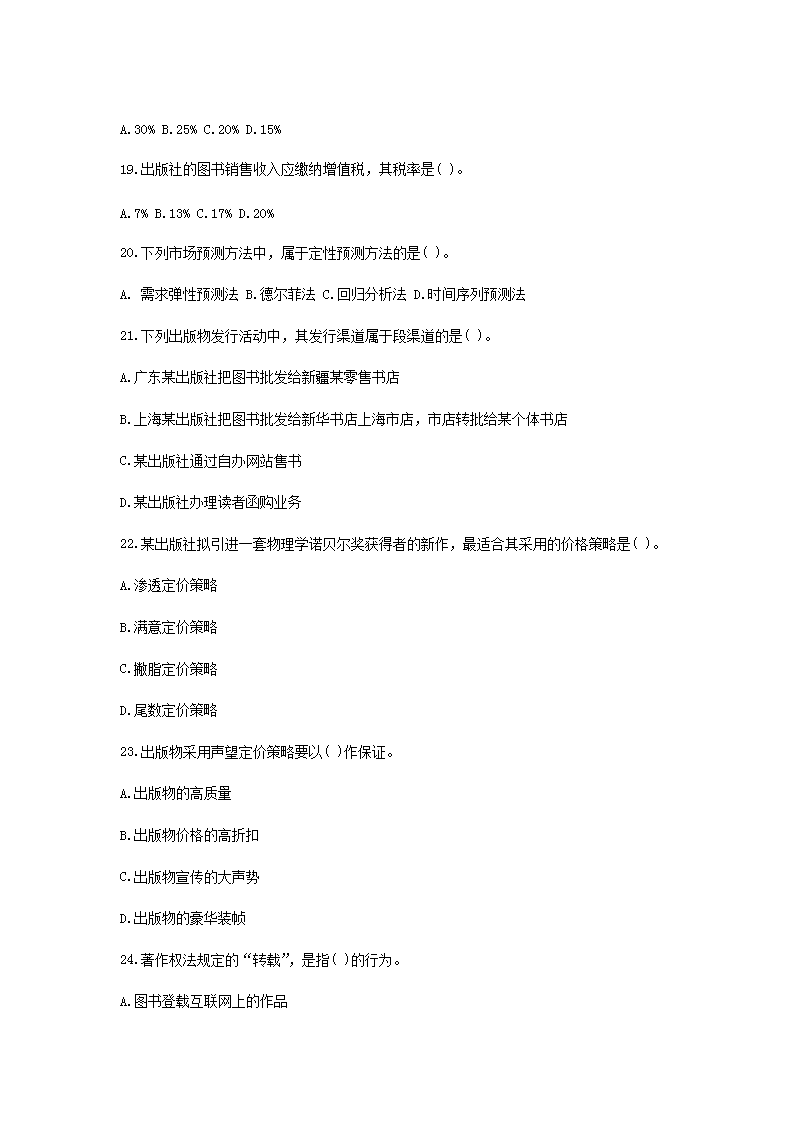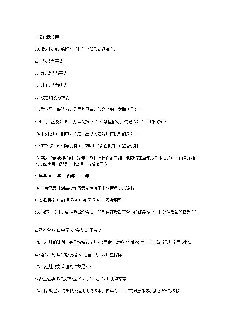 【文档名称】 2012中级出版专业资格考试基础知识真题及答案(Word版).doc