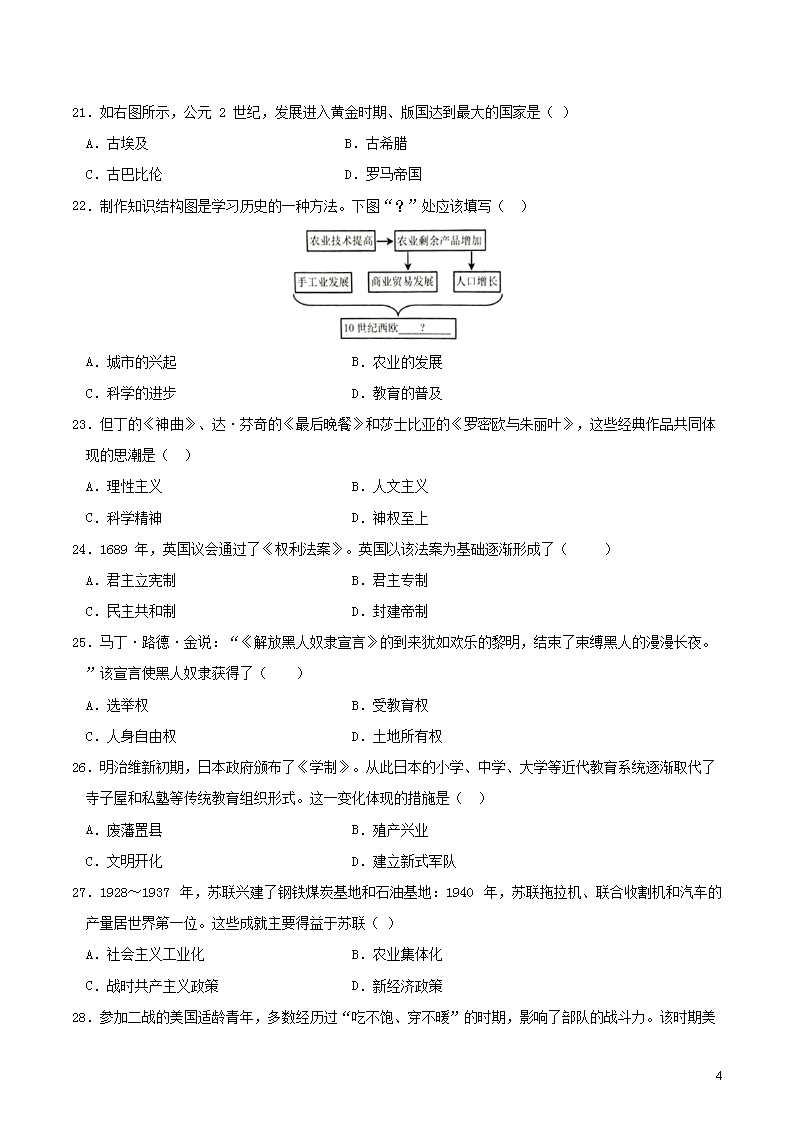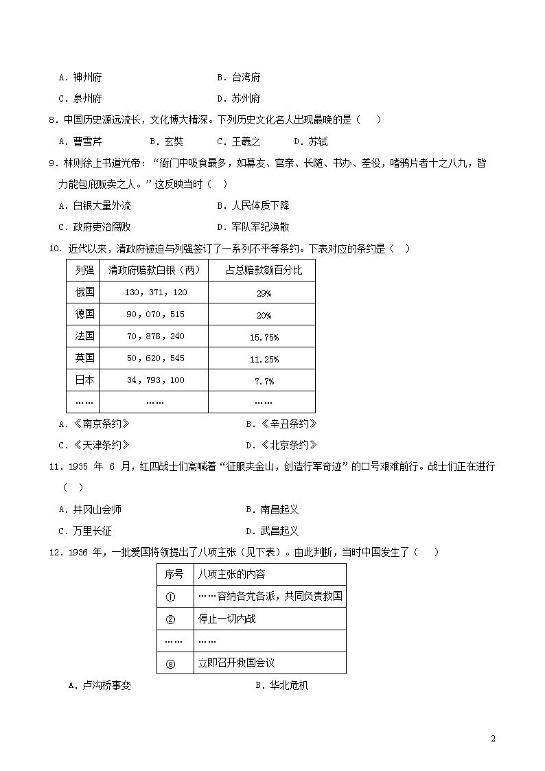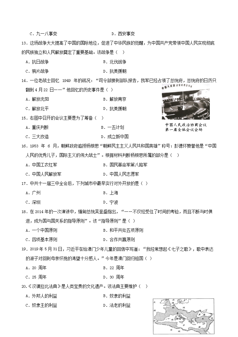 【文档名称】 2019年广东省深圳市中考历史真题及答案(Word版).doc