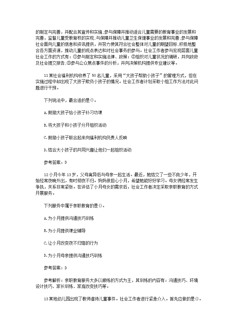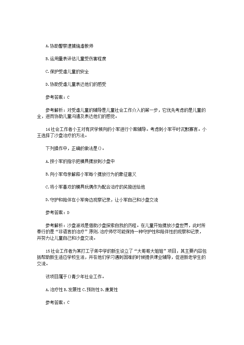 【文档名称】 2013年初级社会工作者工作实务真题及答案(Word版).doc