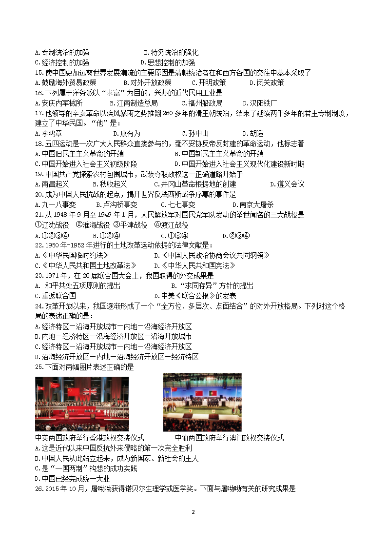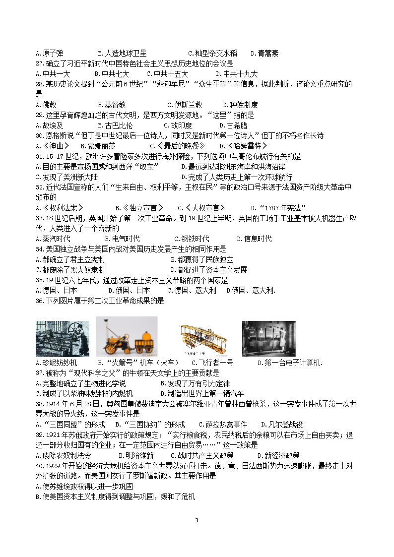 【文档名称】 2019年黑龙江大庆市中考历史真题及答案(Word版).doc