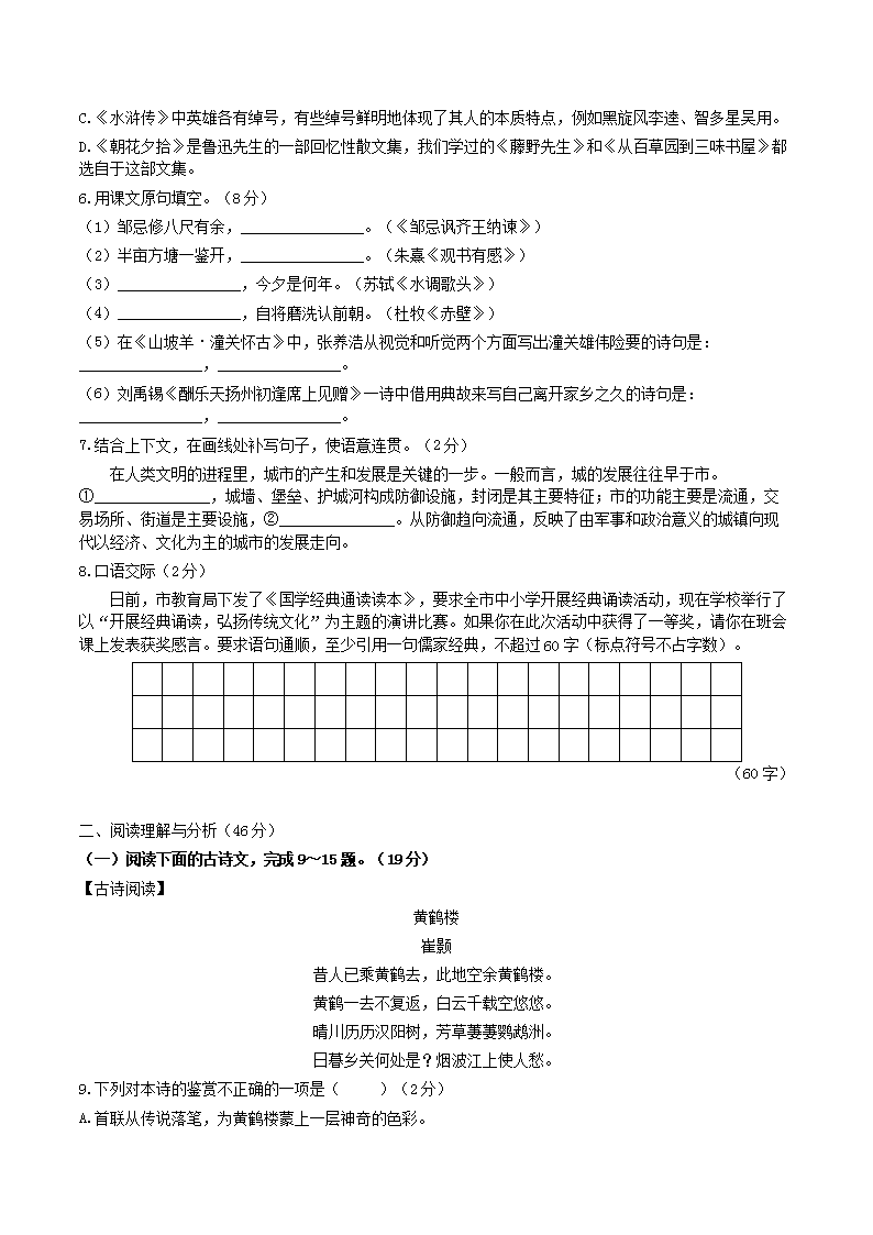 【文档名称】 2019年黑龙江省大庆市中考语文真题及答案(Word版).doc