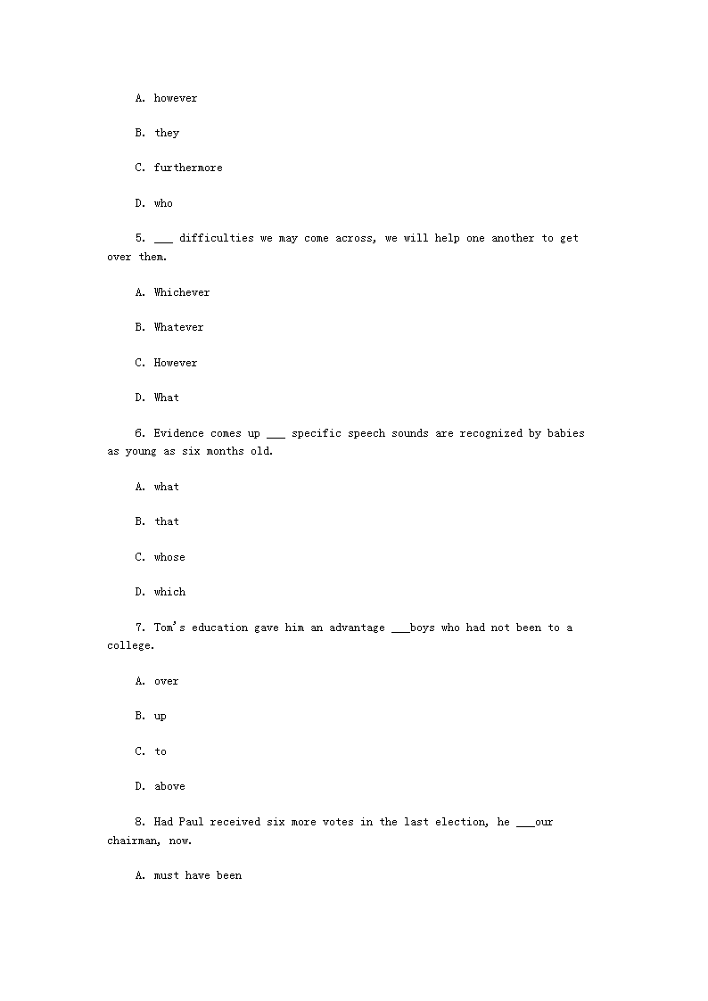 【文档预览】 无忧考网整理发布2012年11月河南成人学士学位英语考试真题(Word版),前五页预览如下: