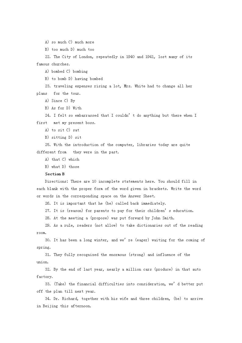 【文档名称】 2005年3月公共英语三级考试真题及答案(Word版).doc