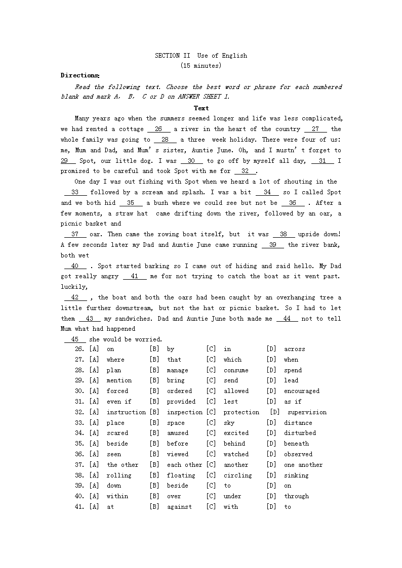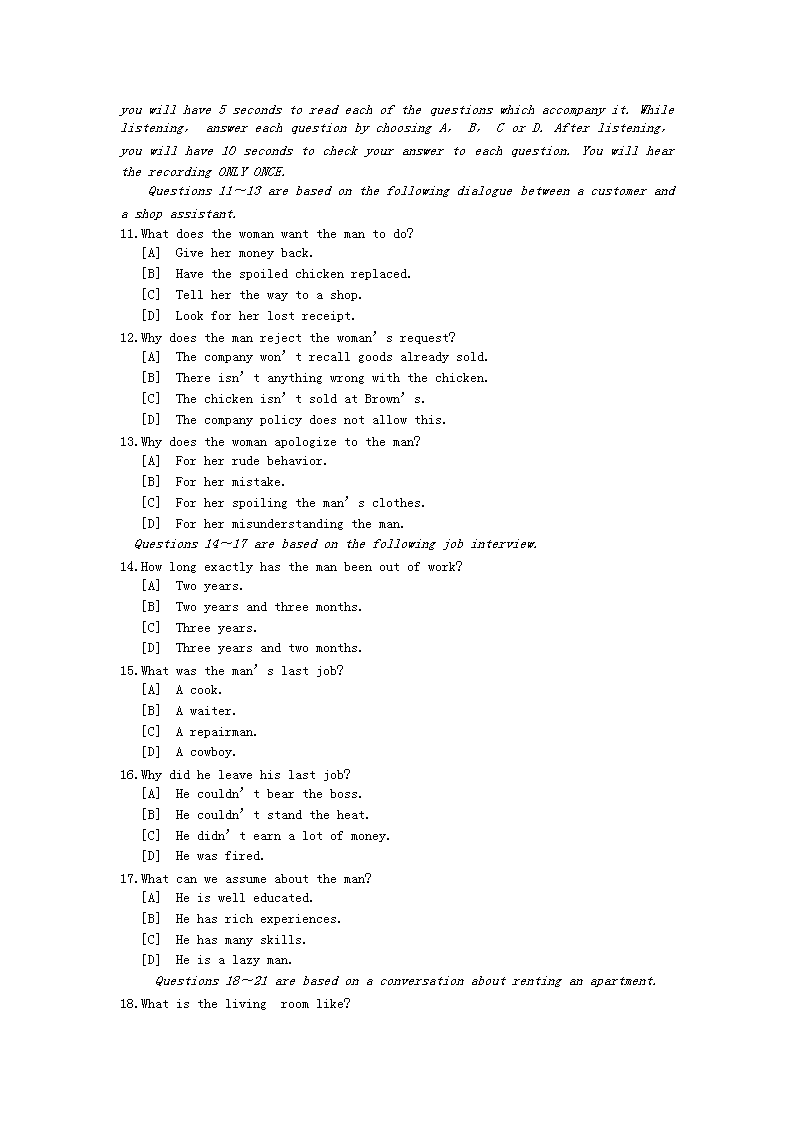 【文档名称】 2005年9月公共英语三级考试真题(Word版).doc