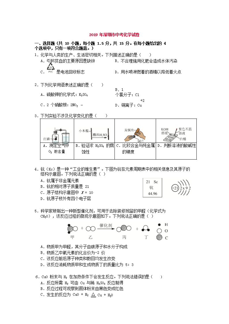 【文档名称】 2019年广东省深圳市中考化学真题及答案(Word版).doc