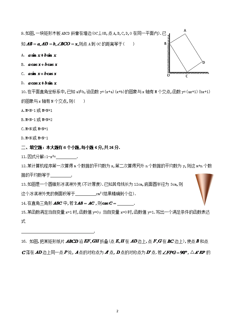 【文档名称】 2019浙江省杭州市中考数学真题及答案(Word版).doc