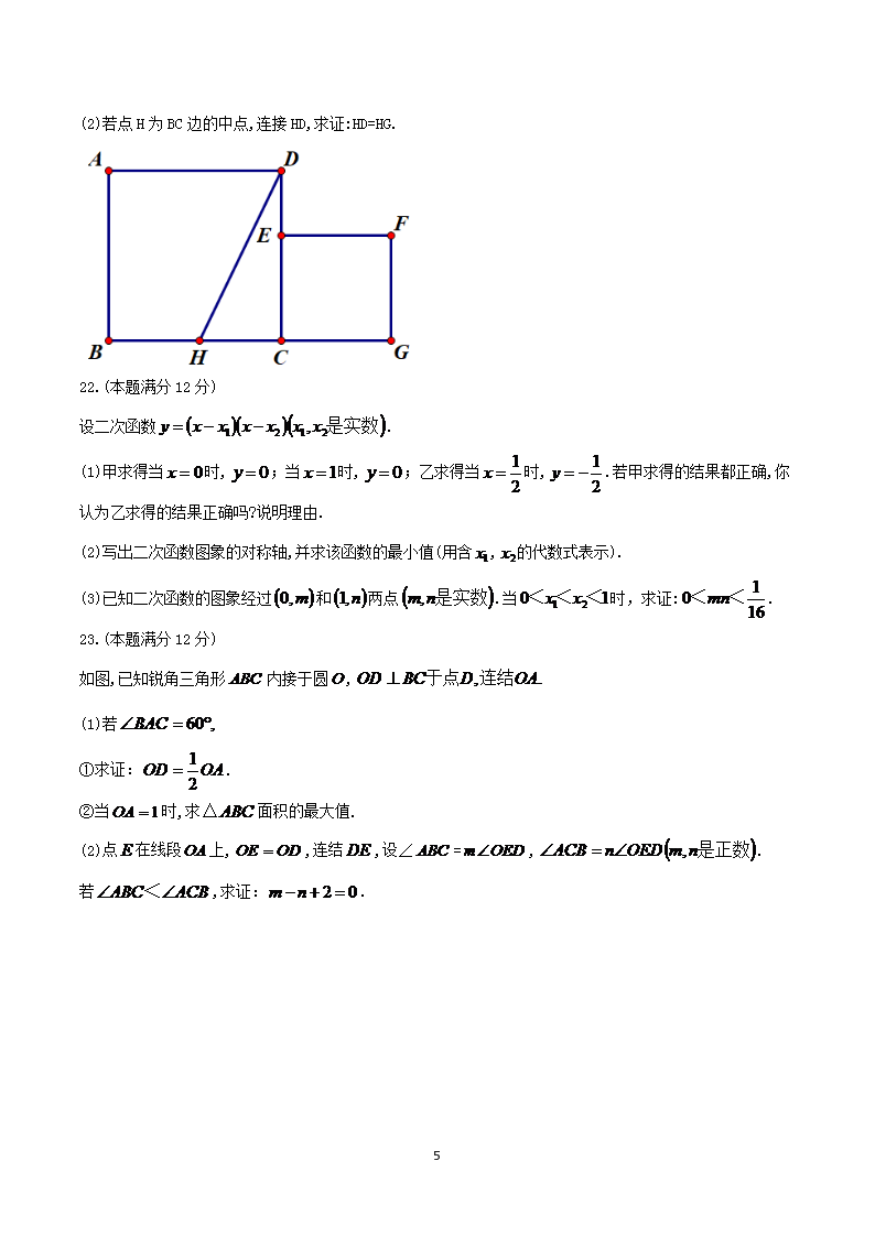 【文档预览】 无忧考网整理发布2019浙江省杭州市中考数学真题及答案(Word版),前五页预览如下: