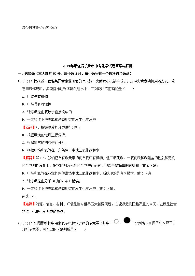 【文档名称】 2019浙江省杭州市中考化学真题及答案(Word版).doc