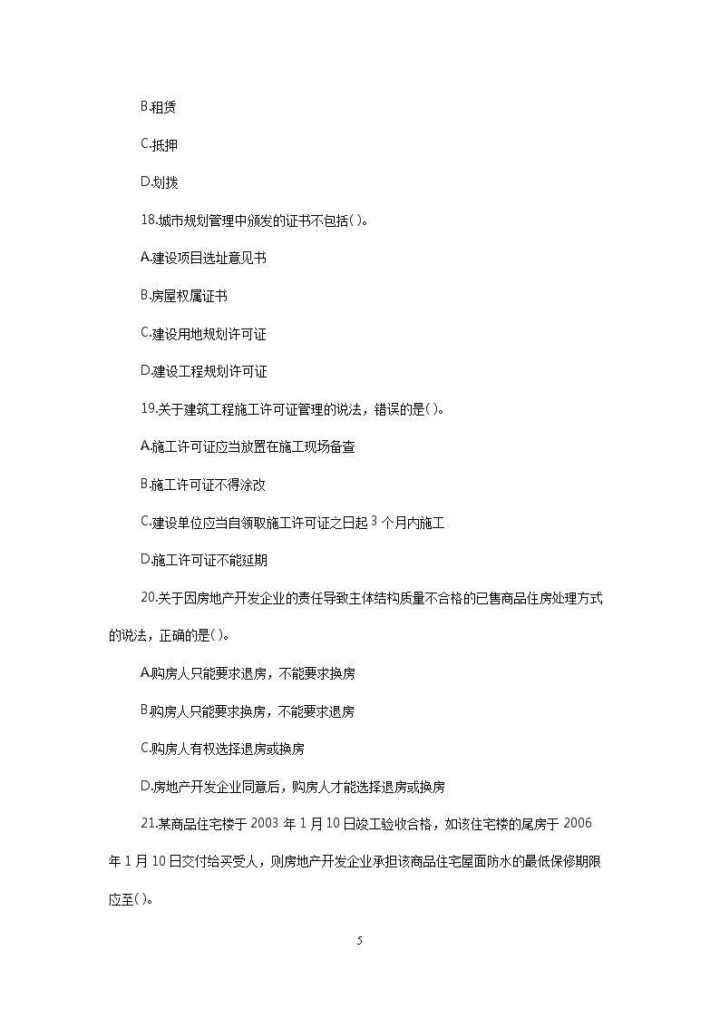 【文档预览】 无忧考网整理发布2011年房地产经纪人房地产基本制度与政策考试真题(Word版),前五页预览如下: