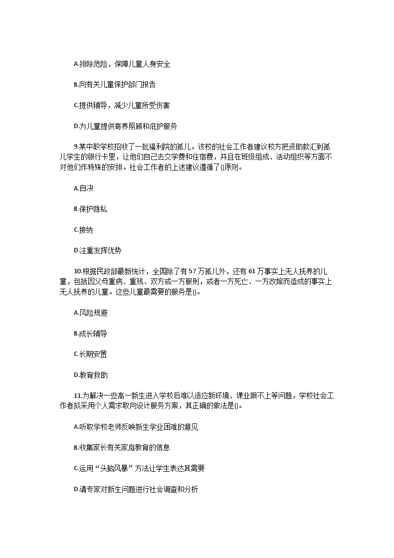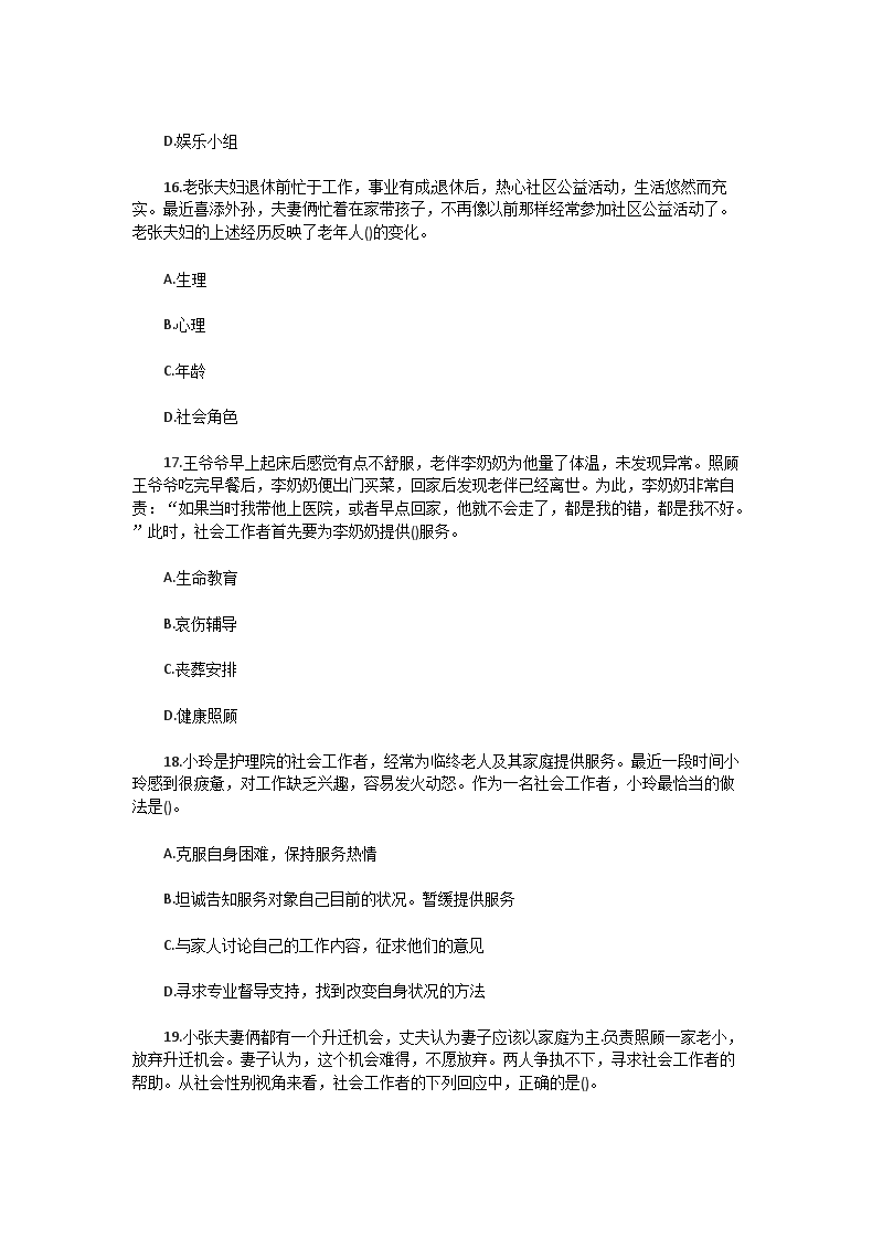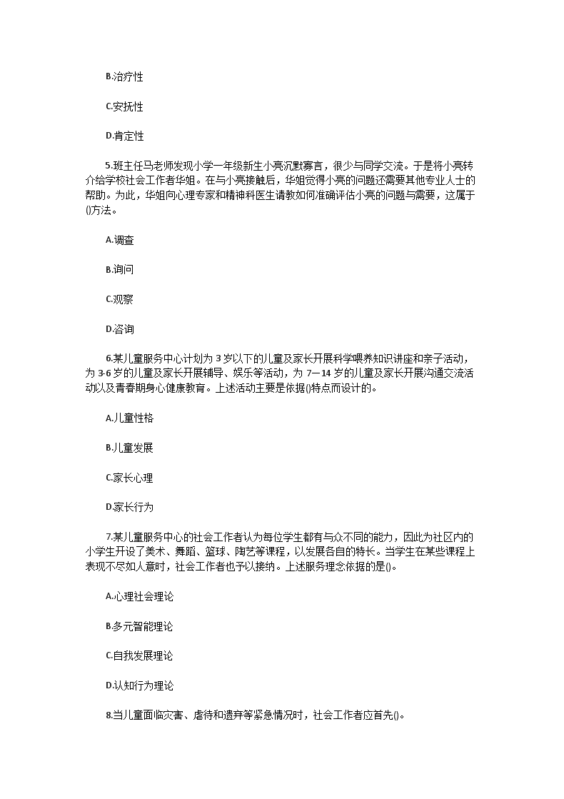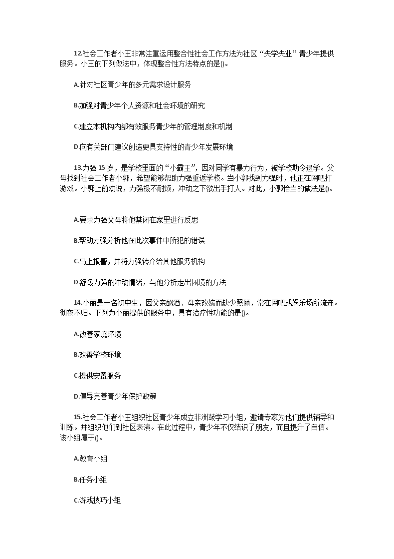 【文档名称】 2014年初级社会工作者工作实务真题及答案(Word版).doc