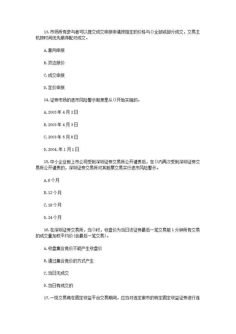 【文档名称】 2017证券从业考试证券交易考试真题及答案解析(Word版).doc
