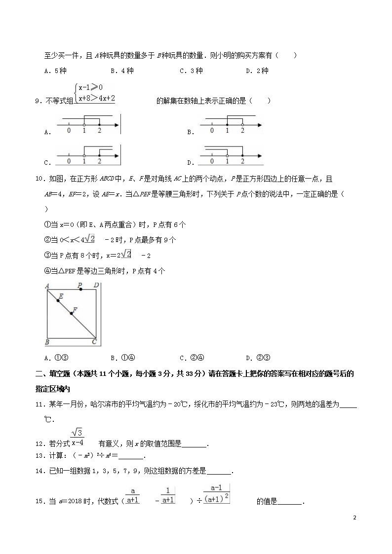 【文档名称】 2019年黑龙江省绥化市中考数学真题试题及答案(Word版).doc