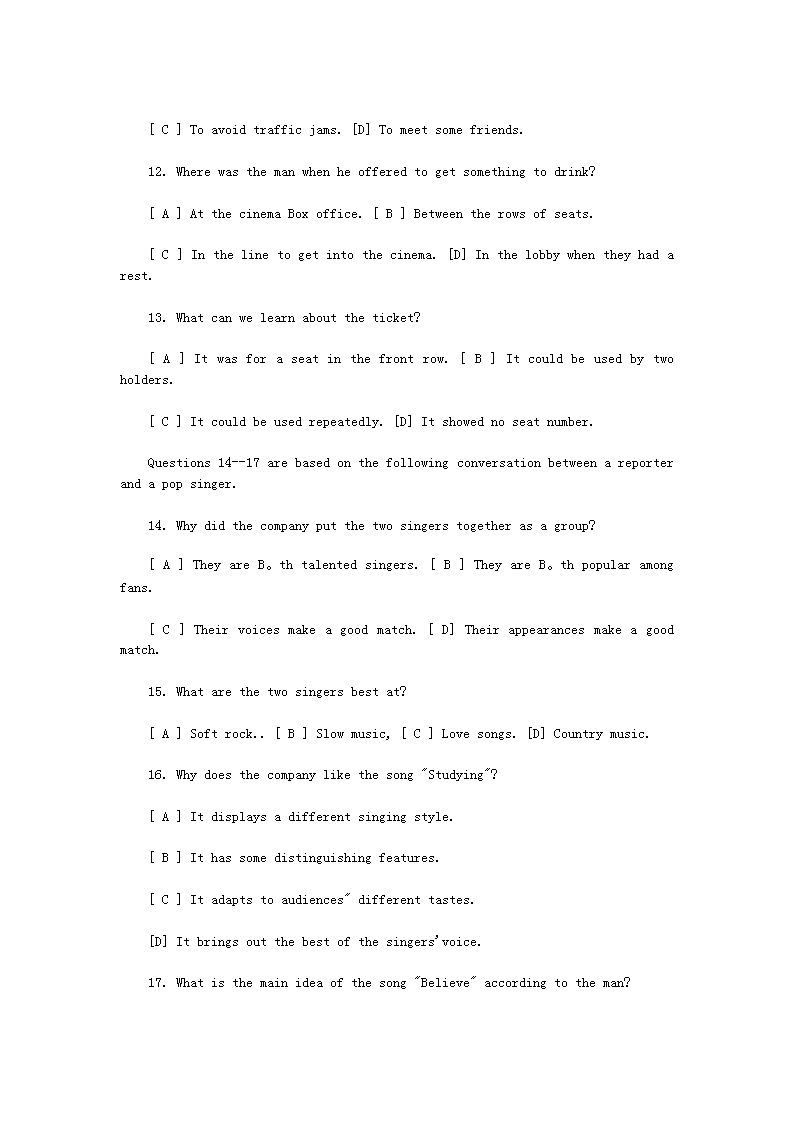 【文档名称】 2013年3月公共英语三级考试真题及答案(Word版).doc