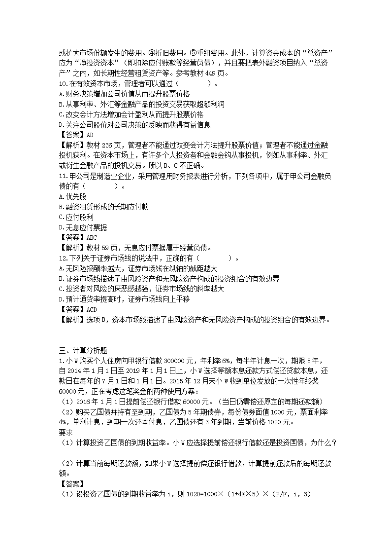 【文档名称】 2016年注册会计师财务成本管理考试真题及答案解析(Word版).doc