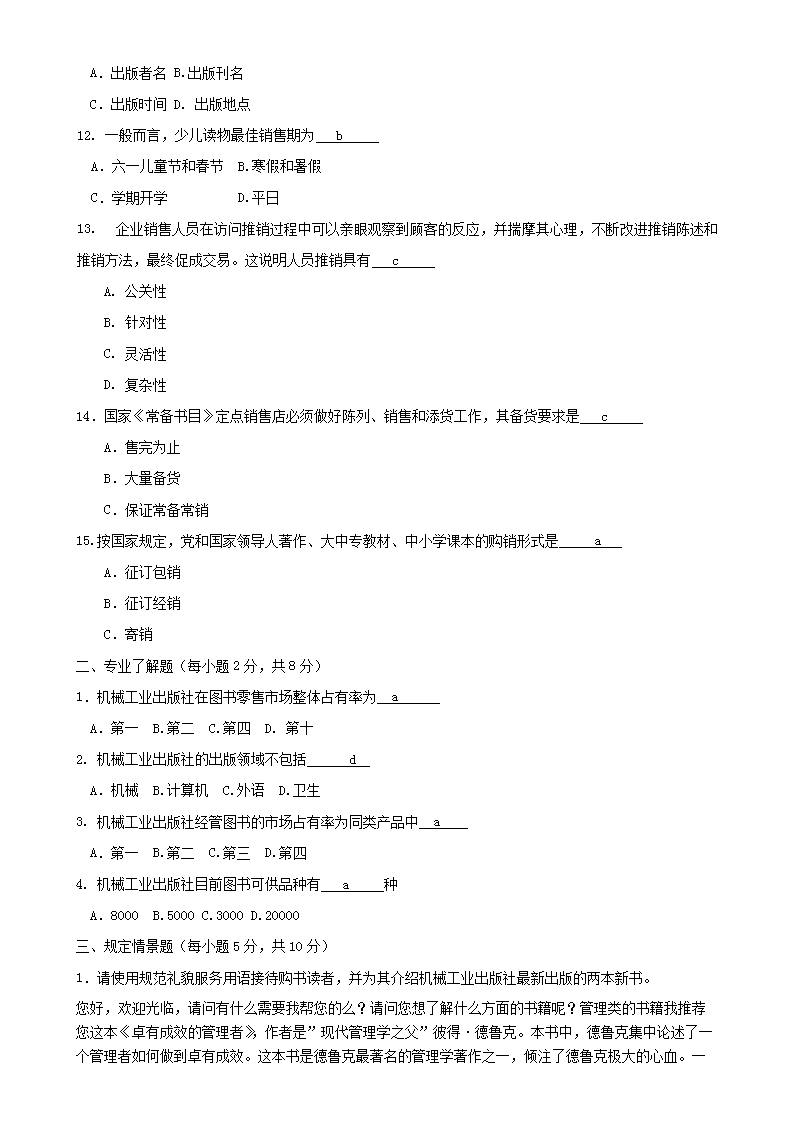 【文档名称】 2014年机械工业出版社招聘真题及答案(Word版).doc