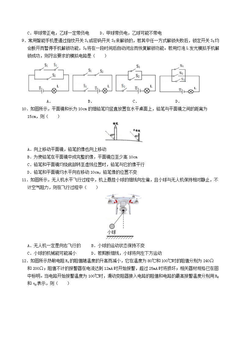 【文档名称】 2019江苏省镇江市中考物理真题及答案(Word版).doc