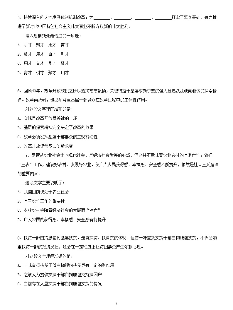 【文档名称】 2019年广东公务员行测考试真题及答案-乡镇(Word版).doc