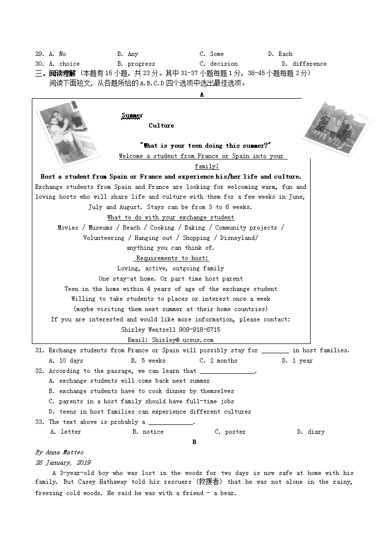 【文档预览】 无忧考网整理发布2019浙江省湖州市中考英语真题及答案(Word版),前五页预览如下: