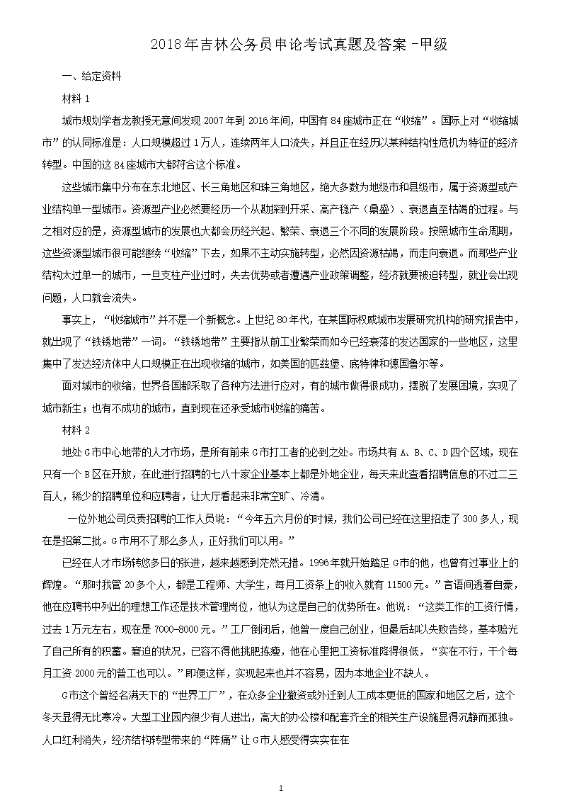 【文档名称】 2018年吉林公务员申论考试真题及答案-甲级(Word版).doc