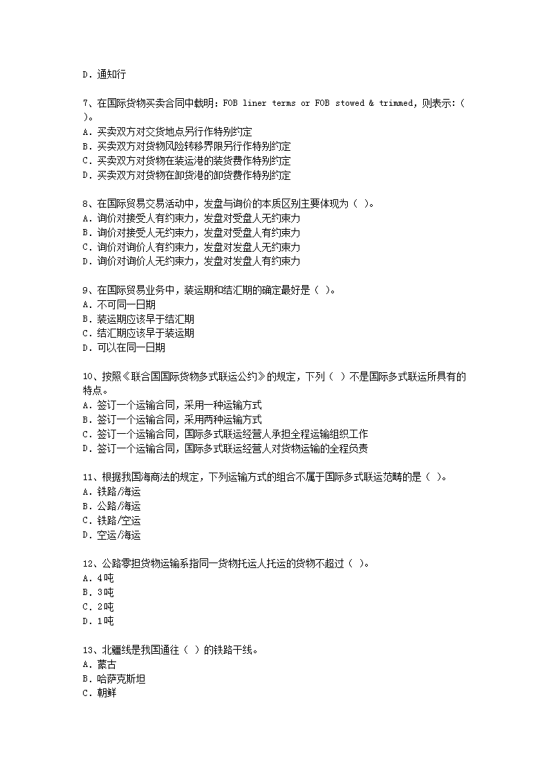 【文档名称】 2005国际货运代理考试业务真题及答案(Word版).doc